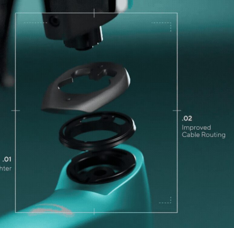 今まではステム一体型ハンドル「タロンウルトラ」しか対応するコックピットに選択肢がありませんでしたが、この新型F5より2ピース形状のアルミステム「CLAW ULTRA AERO ALU ステム」が登場しました。