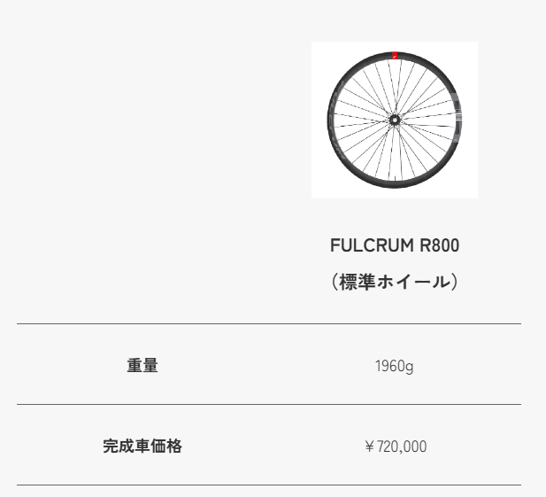 F9のみMOST ウルトラファストDBと言うカーボンホイールが付属します。F7/F5はフルクラムレーシング800が共通で付属されます。